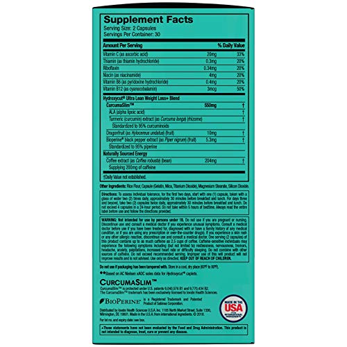 Hydroxycut Ultra Lean brings together two key ingredients — pure turmeric/curcumin that provides 95% curcuminoids and alpha lipoic acid (ALA) in an effective, scientifically researched weight loss combination.