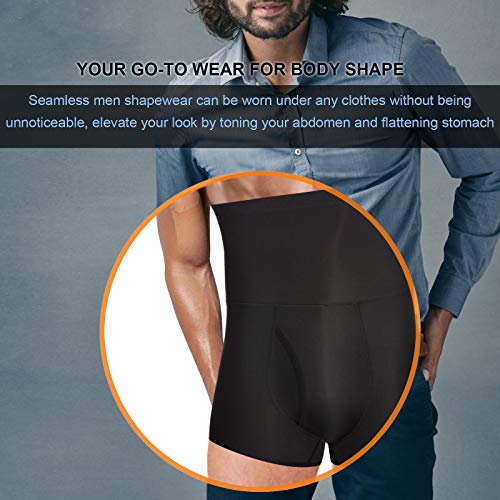 Men waist and tummy shaper was constructed by 72% Nylon + 28% Spandex, stretchy and lightweight fabric which make it great for body shaping, seamless high waist underwear can be paired with any everyday clothes, shrink down waistline without being detected.